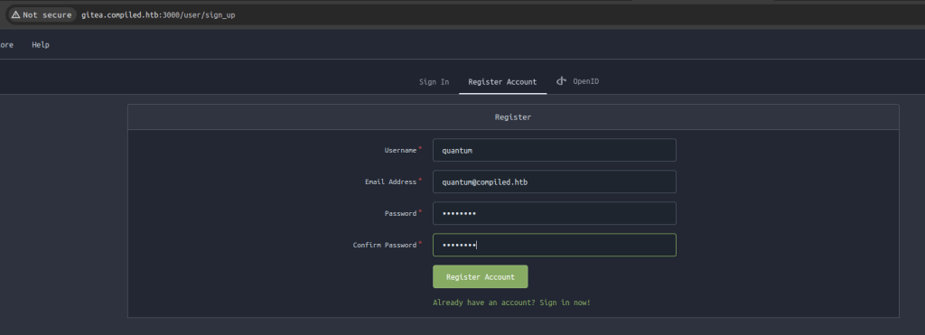 echo "10.10.11.25 compiled.htb gitea.compiled.htb" | sudo tee -a /etc/hosts