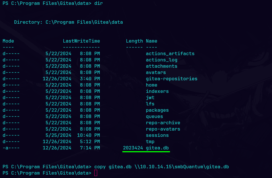 Me descargo el archivo gitea.db a local.