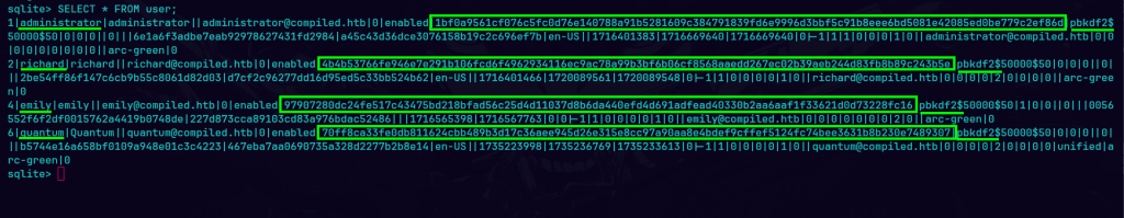 Accedí a la base de datos y obtuve los hashes de las contraseñas guardadas.