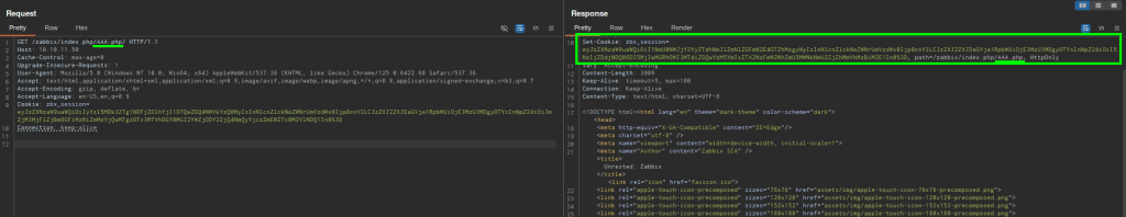 El atributo path específica en las rutas en que el navegador debe enviarla, determinando qué solicitudes recibirán la cookie. Esto permite que la sesión del usuario se mantenga activa incluso si la ruta solicitada no corresponde a un archivo físico en el servidor. Por ejemplo, al realizar una solicitud a AAA.php, el servidor puede responder con un código 200 OK a pesar de que el archivo no exista, gracias a un controlador que gestiona todas las solicitudes que comienzan con /zabbix/index.php. Este enfoque permite que la aplicación maneje la lógica de la sesión del usuario y establezca o modifique la cookie zbx_session, asegurando que la experiencia del usuario sea fluida y continua. Lo que me indica que podría permitir el acceso no autorizado por medio de las cookies.