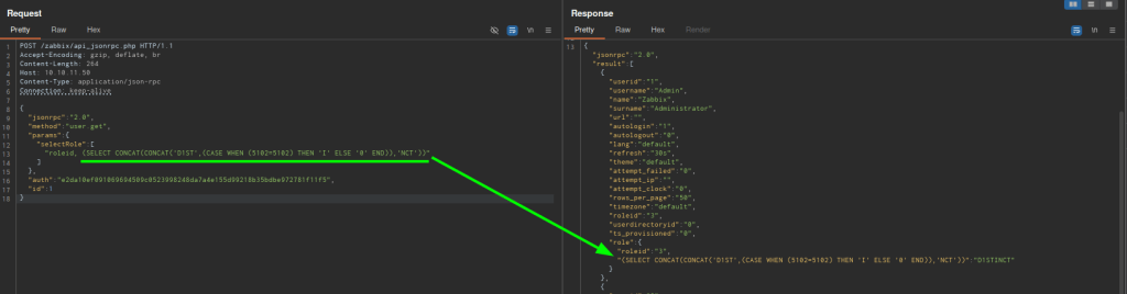 params = {"output": "extend", "selectRole": ["roleid, u.passwd"]}
