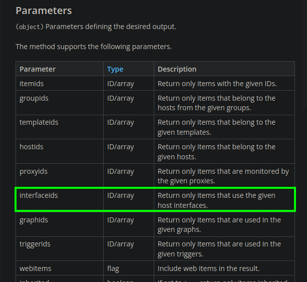 Para obtener el valor del ID de la interfaz que está utilizando este host, puedo emplear el parámetro interfaceids para filtrar y determinar cuál es el ID de la interfaz correspondiente.