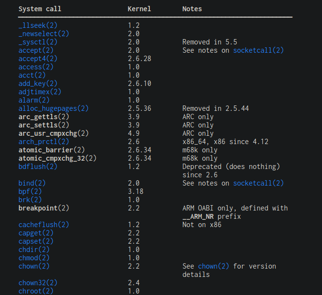 https://man7.org/linux/man-pages/man2/syscalls.2.html