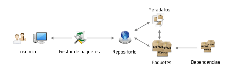 DNF (Dandified YUM), que se utilizan en distribuciones basadas en Red Hat, como CentOS, Fedora y RHEL. Gestiona los paquetes en formato .rpm.