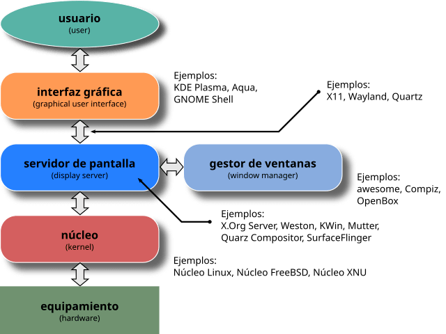 Las aplicaciones, pueden ser de línea de comandos o gráficas, en línea de comandos se ejecutan por medio de la terminal, por ejmeplo ls, que lista los archivos y directorios, cp, que copia archivos y directorios de una ubicación a otra, mv, que mueve o renombra archivos y directorios, grep, que busca patrones en archivos de texto y editores de texto como (nano, vim, nvim), que permiten a los usuarios crear y modificar archivos de texto. En entorno gráficas tienen una interfaz de usuario (GUI) por ejemplo aplicaciones gráficas incluyen navegadores web como Firefox, Brave o Librewolf, editores de imágenes como GIMP o Krita, y suites de oficina como LibreOffice u OnlyOffice.