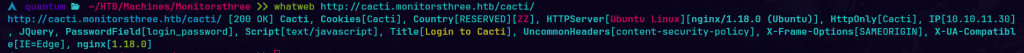 sudo sed -i '/10.10.11.30/s/$/ cacti.monitorsthree.htb/' /etc/hosts