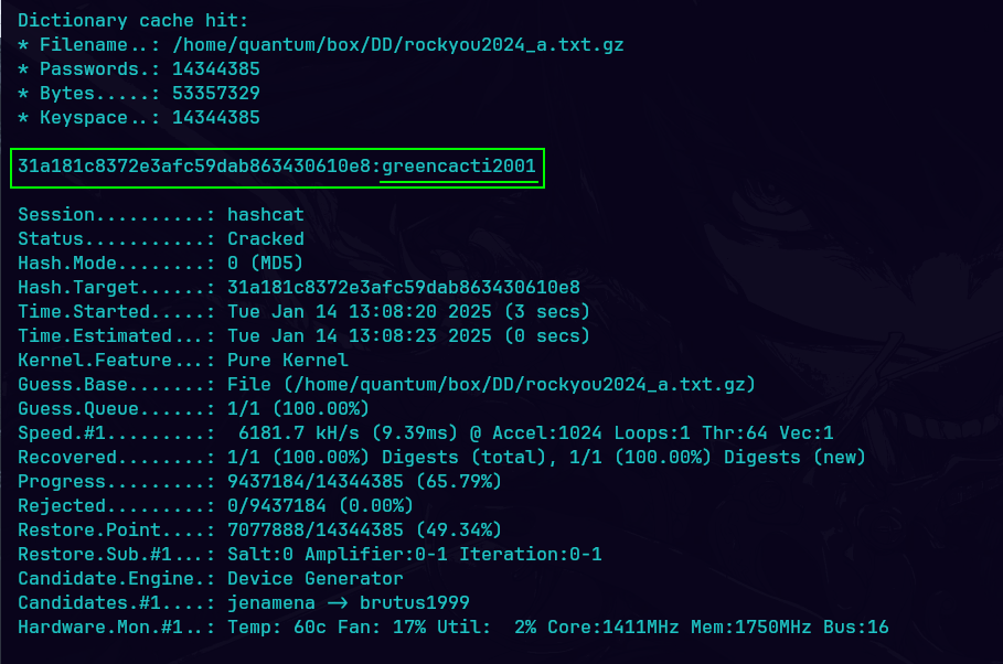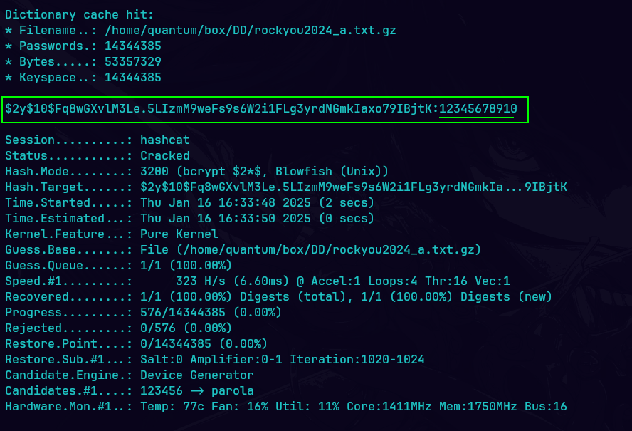 Logro crackear el hash obteniendo la contraseña en texto plano