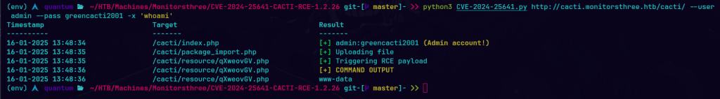 Por medio del cve ejecuto el comando whoami en el servidor, mostrando que lo corre el usuario www-data
