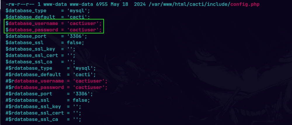 El usuario admin reutiliza las credenciales en el servicio de cacti.