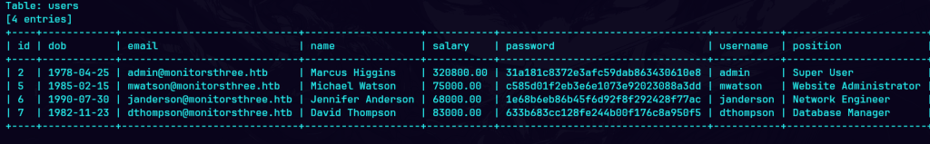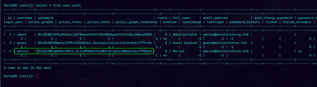 Obtengo los hashes de los usuarios en monitorsthree.htb