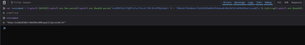 Creo un NoncePwd válido que nos permita autenticar usando Server-passphrase desde DB > pasamos por Base64 > y por ultimo Hex, uso el comando var desde la consola del navegador.