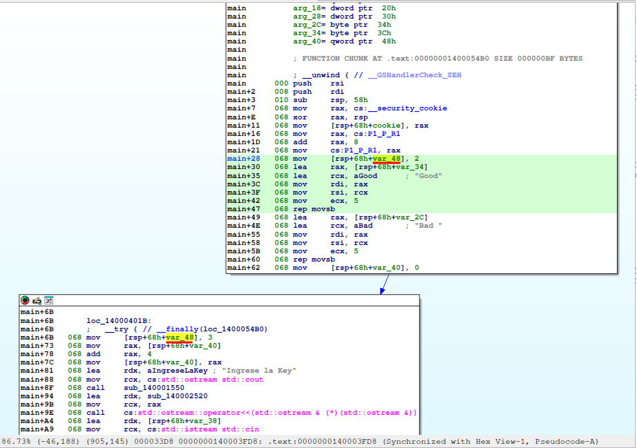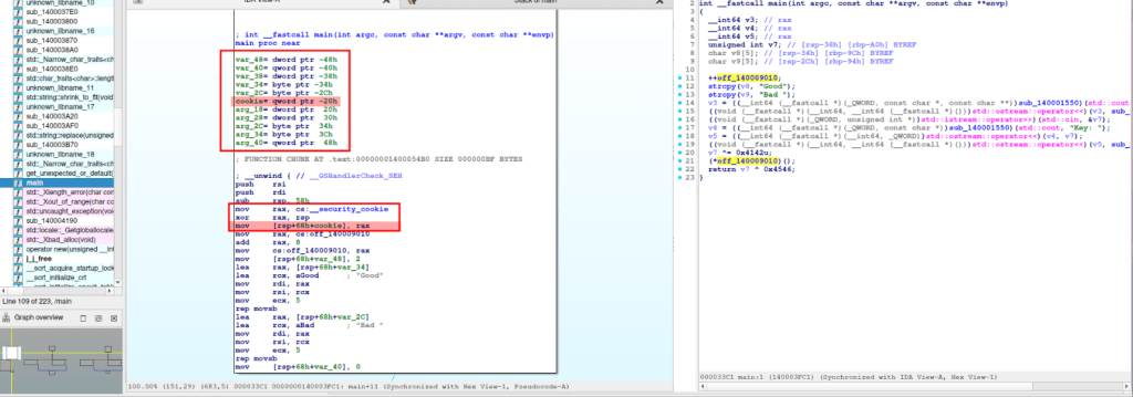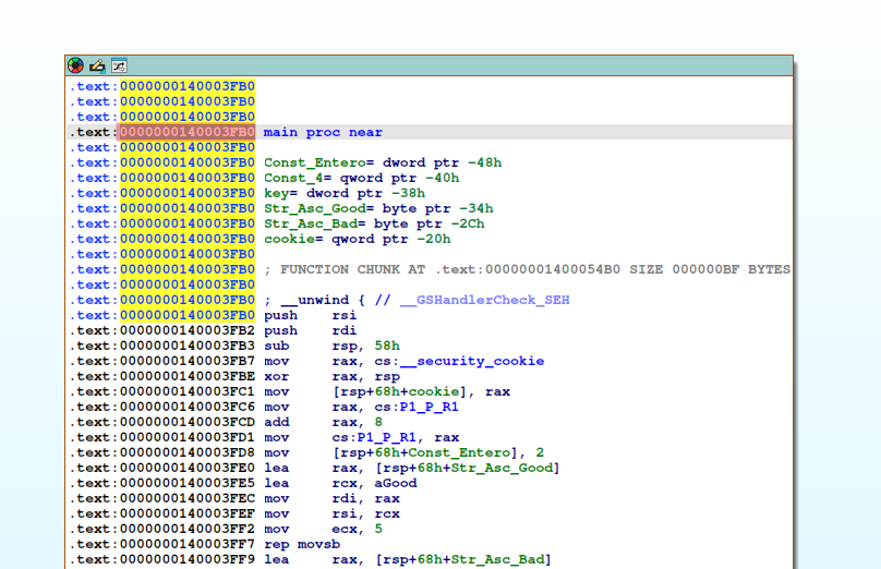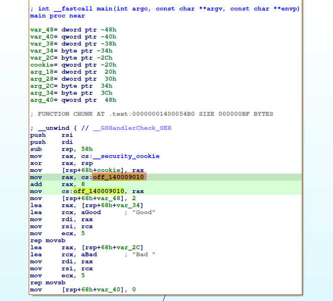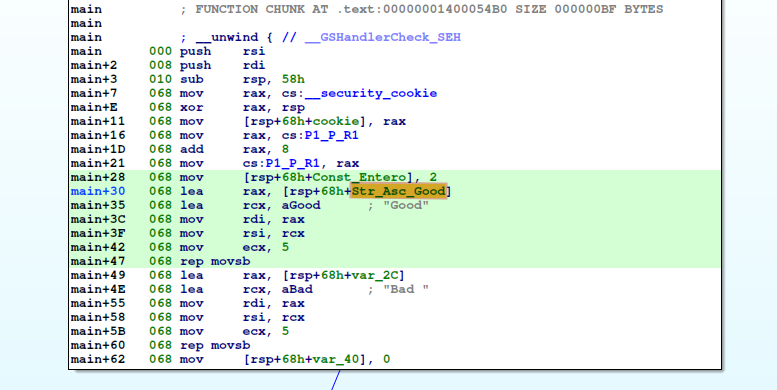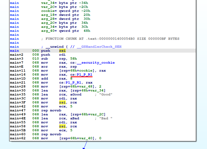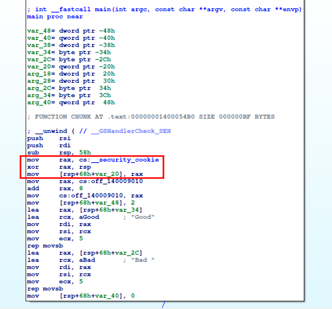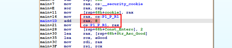 Comienzo analizando la instrucción mov rax, cs:__security_cookie