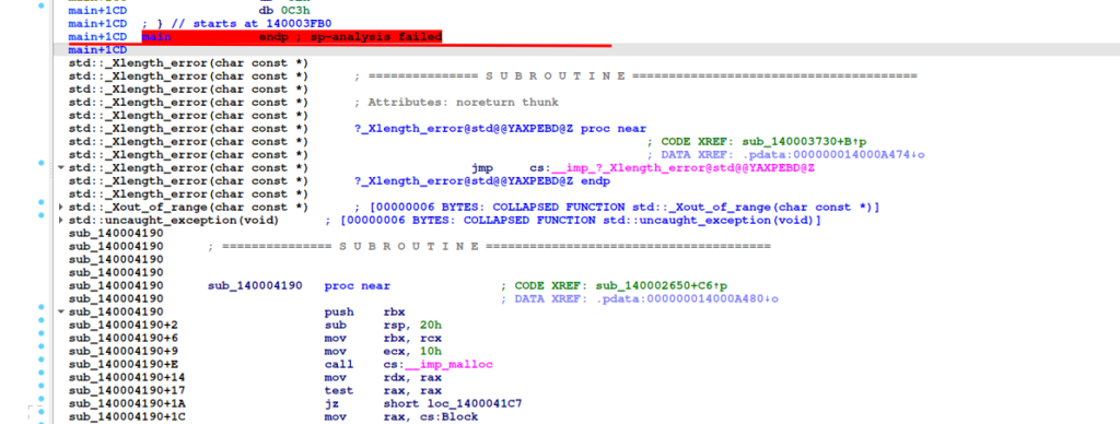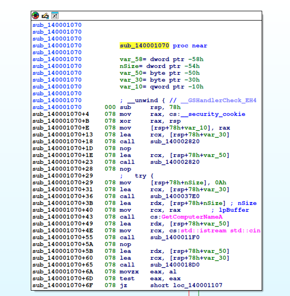 sub_140001070 apunta a esta función a resolver.