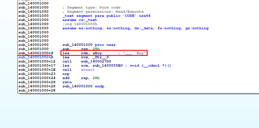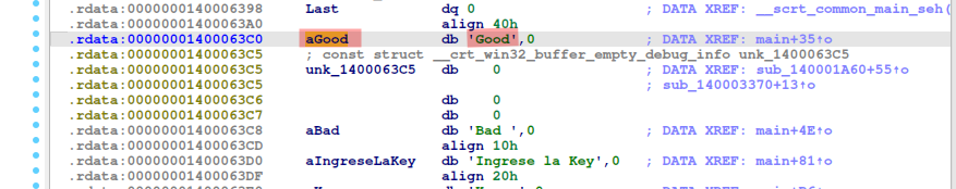 Lo que hace es reemplazar Good o Bad dependiendo de la key si es válida o no, seguido por Boy, sub_1400055B0 este es el constructor de la string.