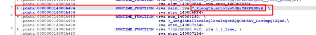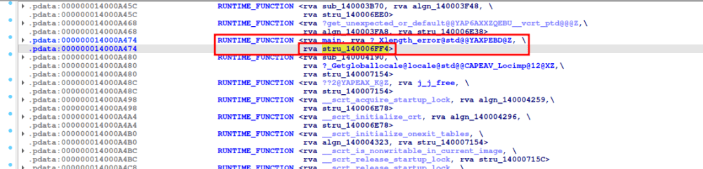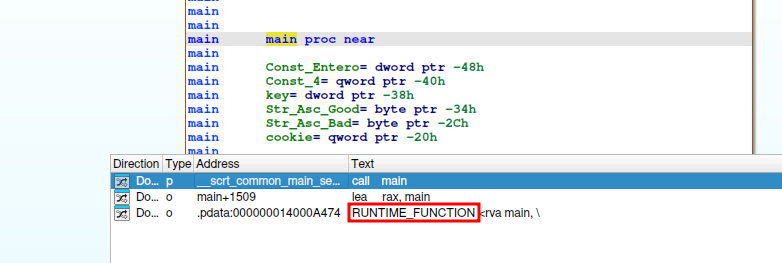 Si busco una referencia del main, sobre RUNTIME_FUNCTION.