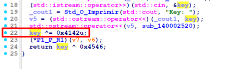 Luego imprime la key y aplico ^ para obtener el valor con 0x4142u;
